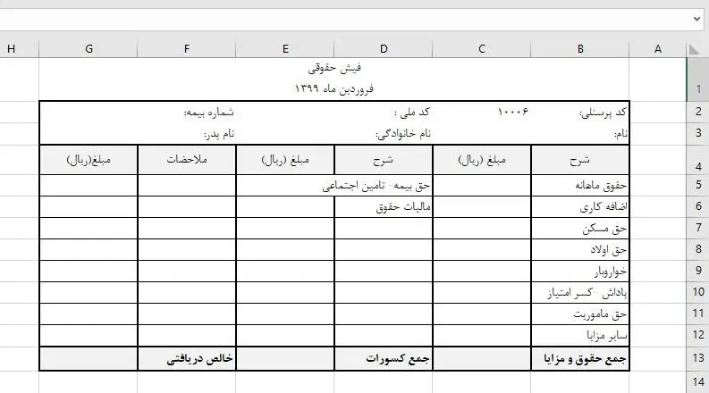 نمونه فیش حقوقی استاندارد چگونه است؟