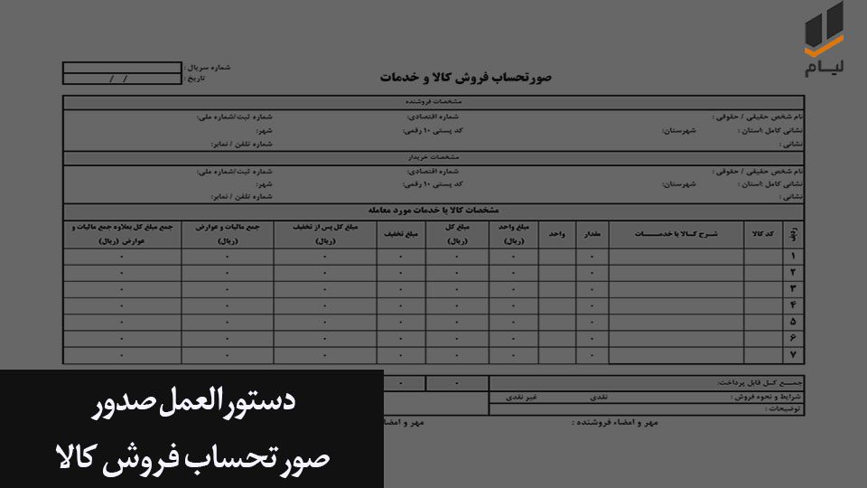 ۱- صورتحساب فروش کالا میباید برخوردار از شماره سریال چاپی و یا شماره سریال صادره توسط سیستمهای رایانهای باشد و تاریخ صدور به تقویم هجری شمسی بر روی آن درج گردد